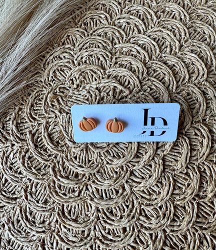 Gold Stemmed Orange Pumpkin Studs