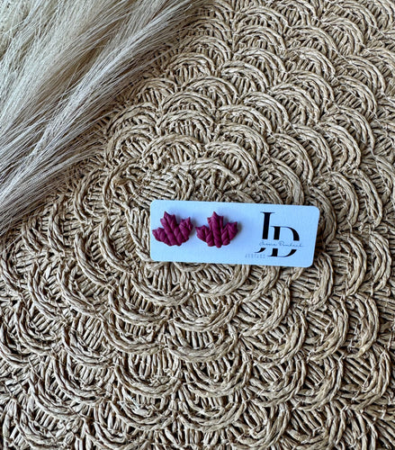 Textured Maroon Leaf Studs