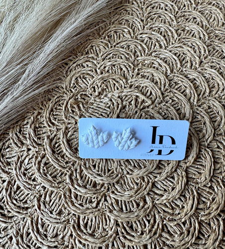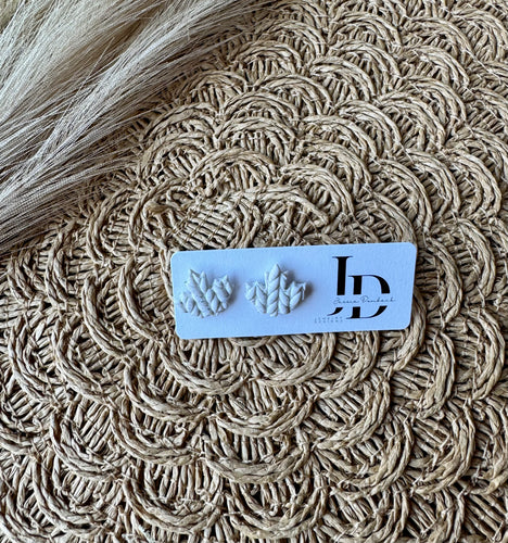 Textured White Leaf Studs